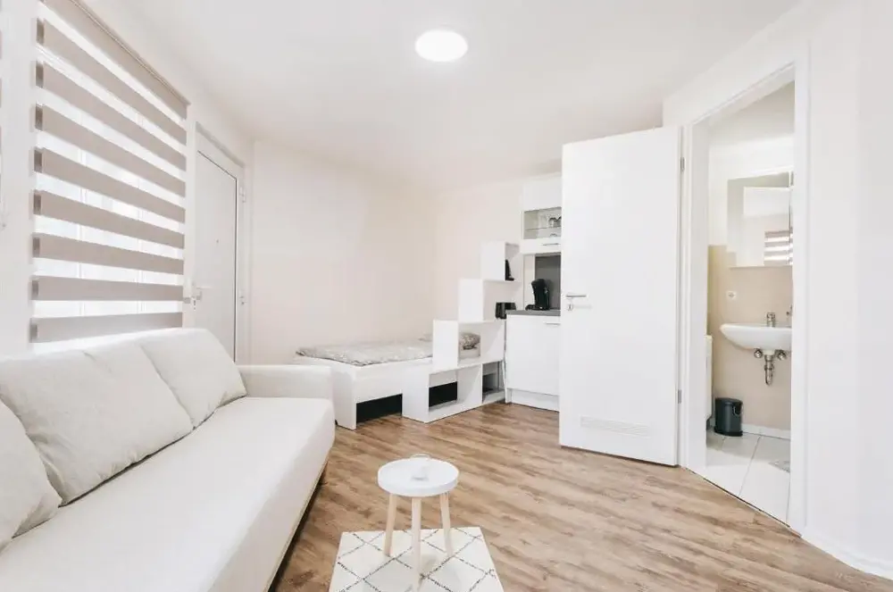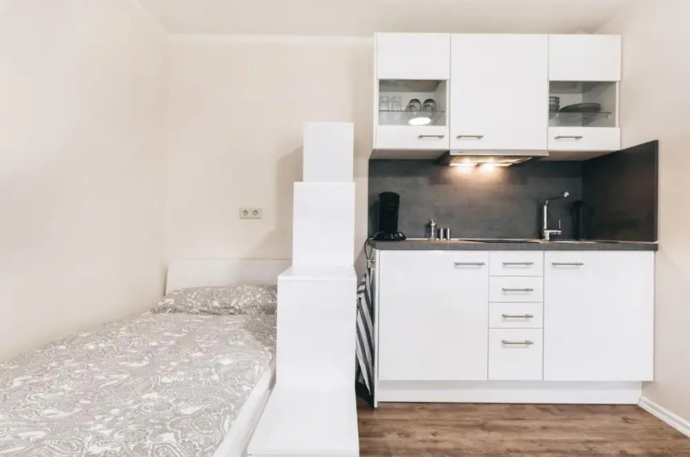Sehr schöne 1-Zimmer-Wohnung mit außergewöhnlicher Ausstattung. Die Lage war ideal. Ein Spaziergang ins Stadtzentrum dauerte etwa eine halbe Stunde, und vom Ferienhaus aus konnten wunderschöne Wanderungen durch die Natur genossen werden.